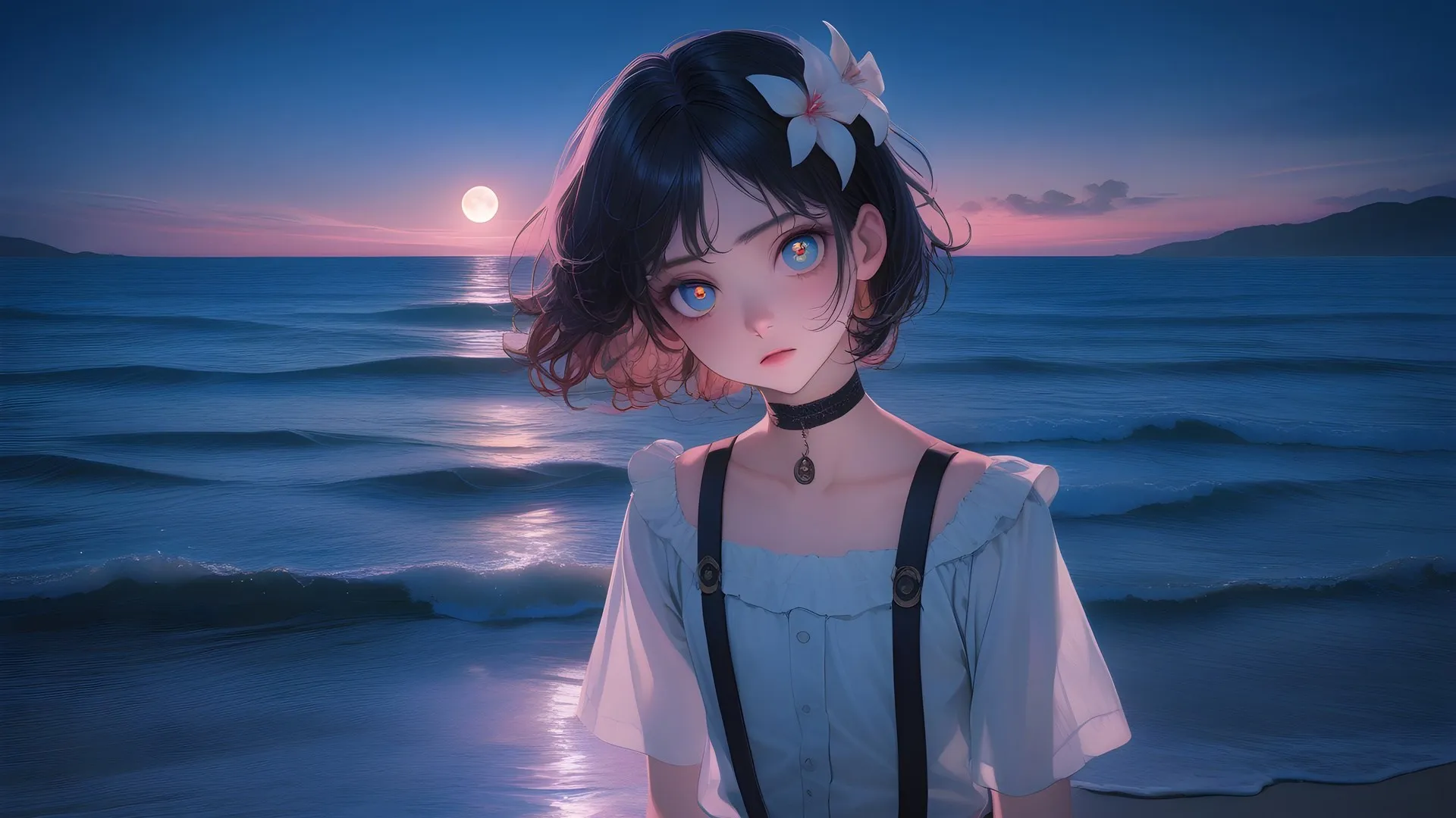 动漫女孩 人工智能艺术 超现实主义 海滩 日落 桌面壁纸 4k壁纸