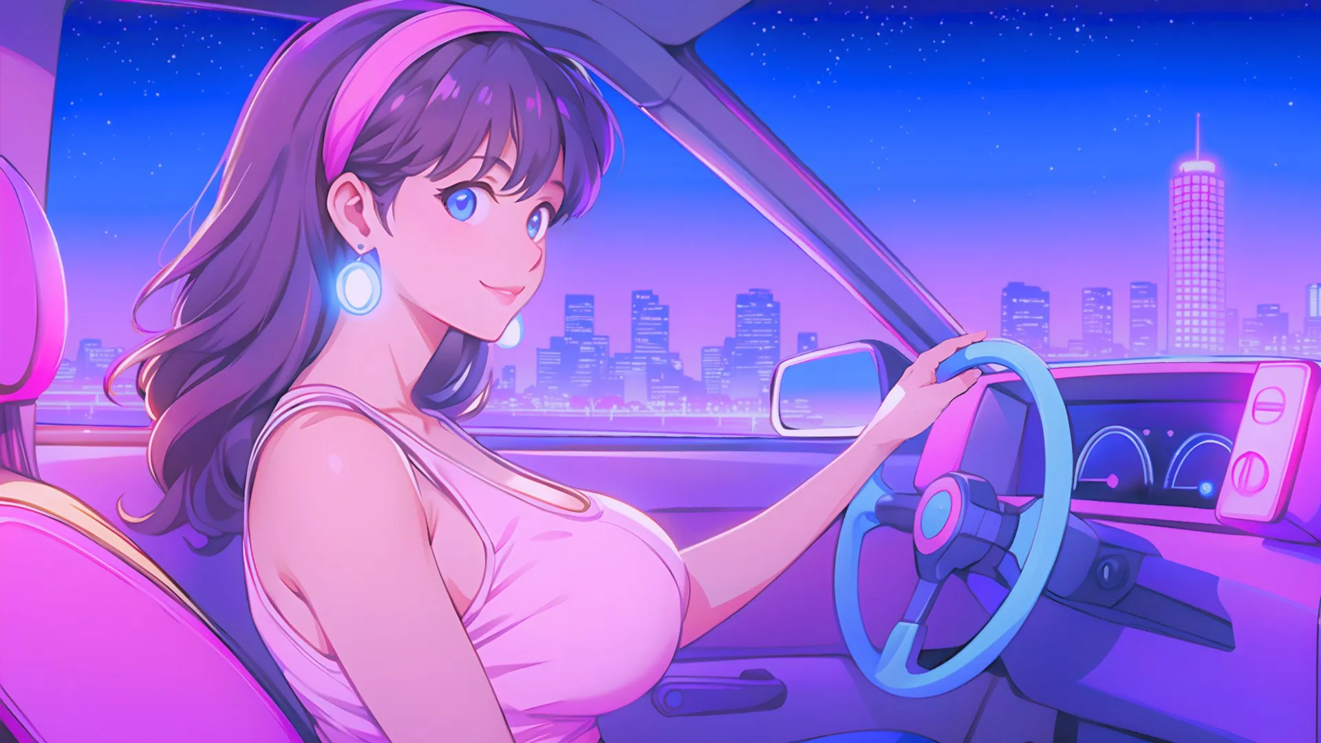 最新4k壁纸 动漫女孩霓虹灯桌面壁纸 高清无水印壁纸下载