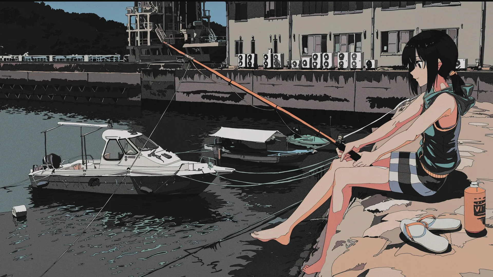 最新4k壁纸 动漫女孩钓鱼竿桌面壁纸 高清无水印壁纸下载