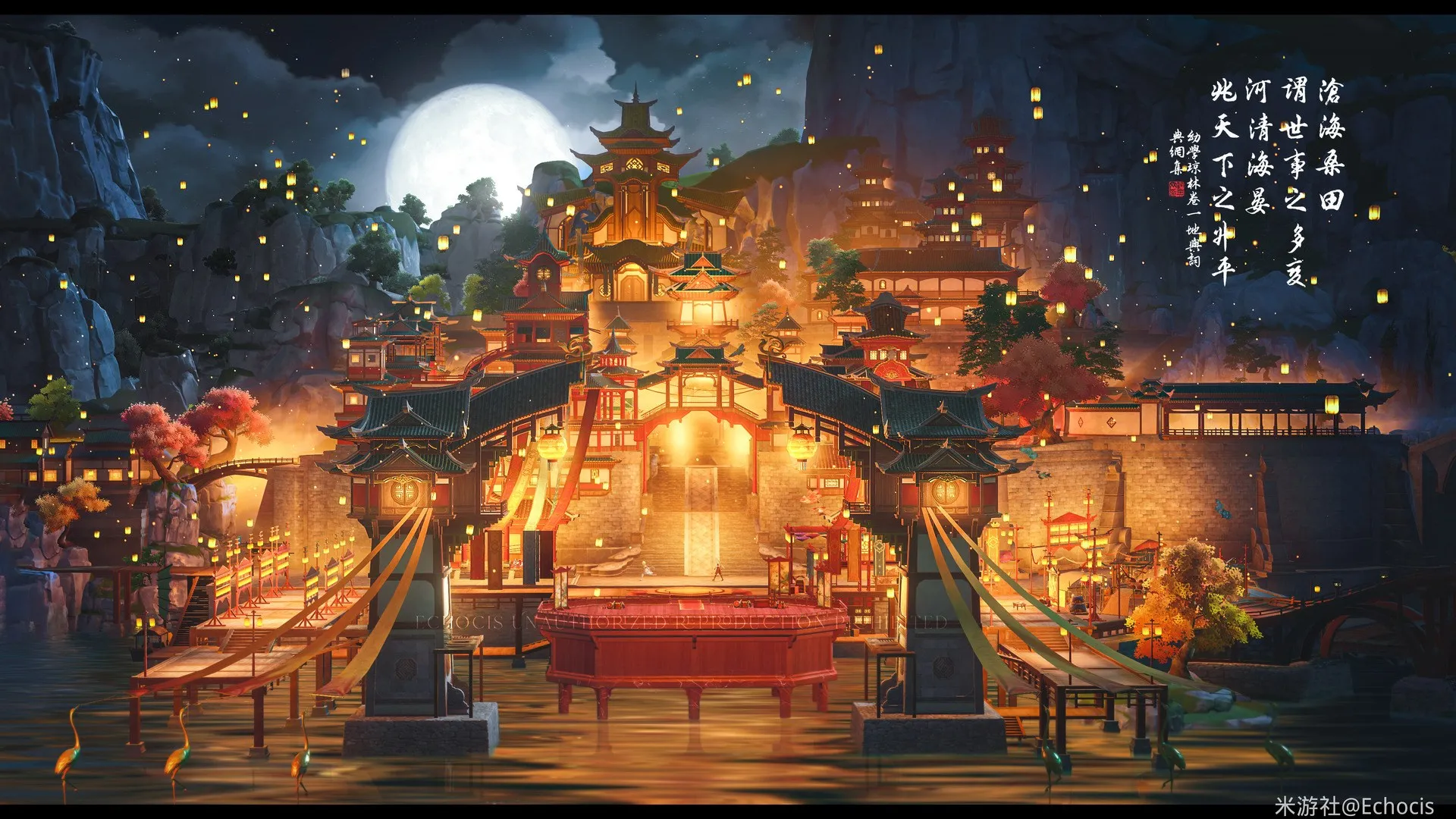 动画 屏幕截图 月亮 灯笼 元宵节 春节 山 中国建筑 汉字 桌面壁纸 4k壁纸