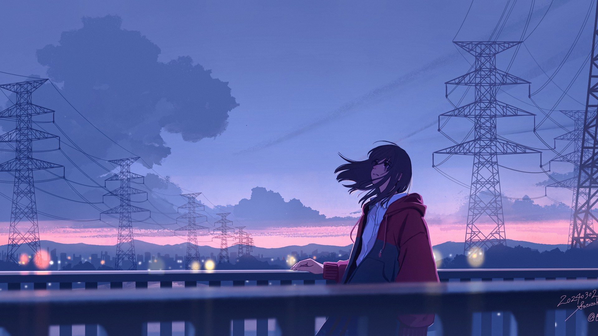 数字艺术 艺术品 电力线 日落 桌面壁纸 4k壁纸