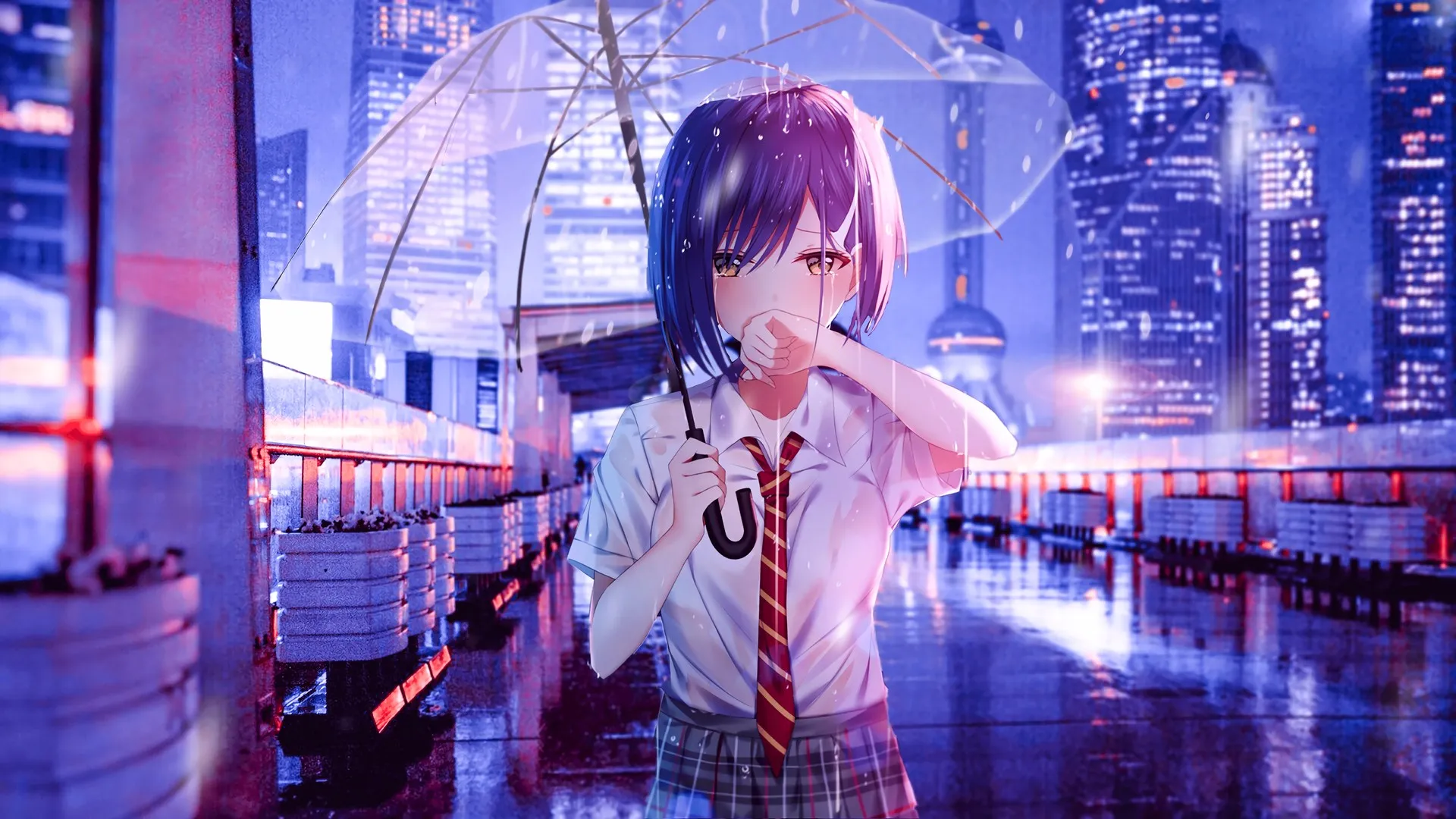 雨伞 下雨 哭泣 城市灯光  白色衬衫 电脑贴纸 8 K贴纸