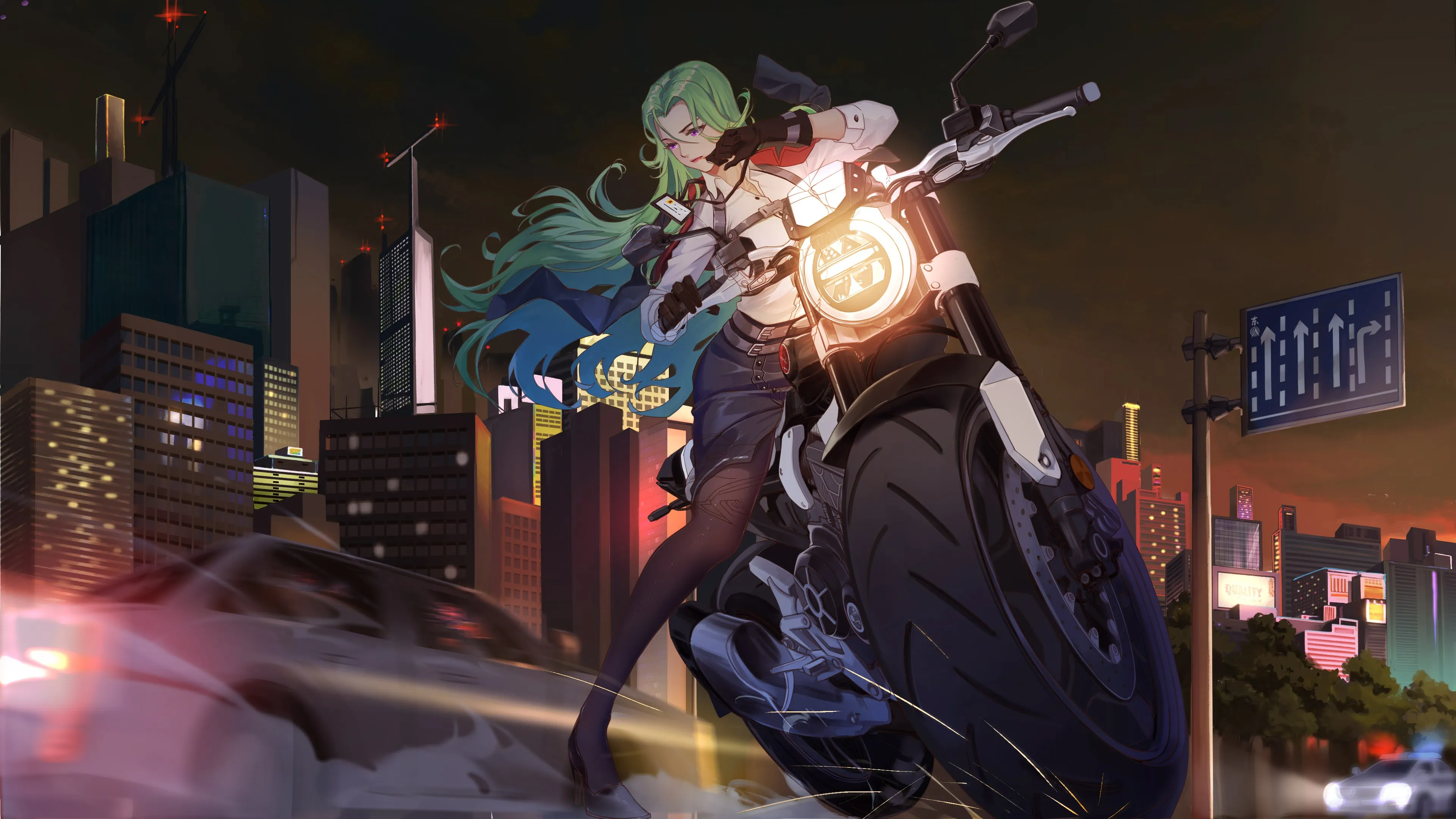 摩托车 城市 动漫 女孩 4k壁纸