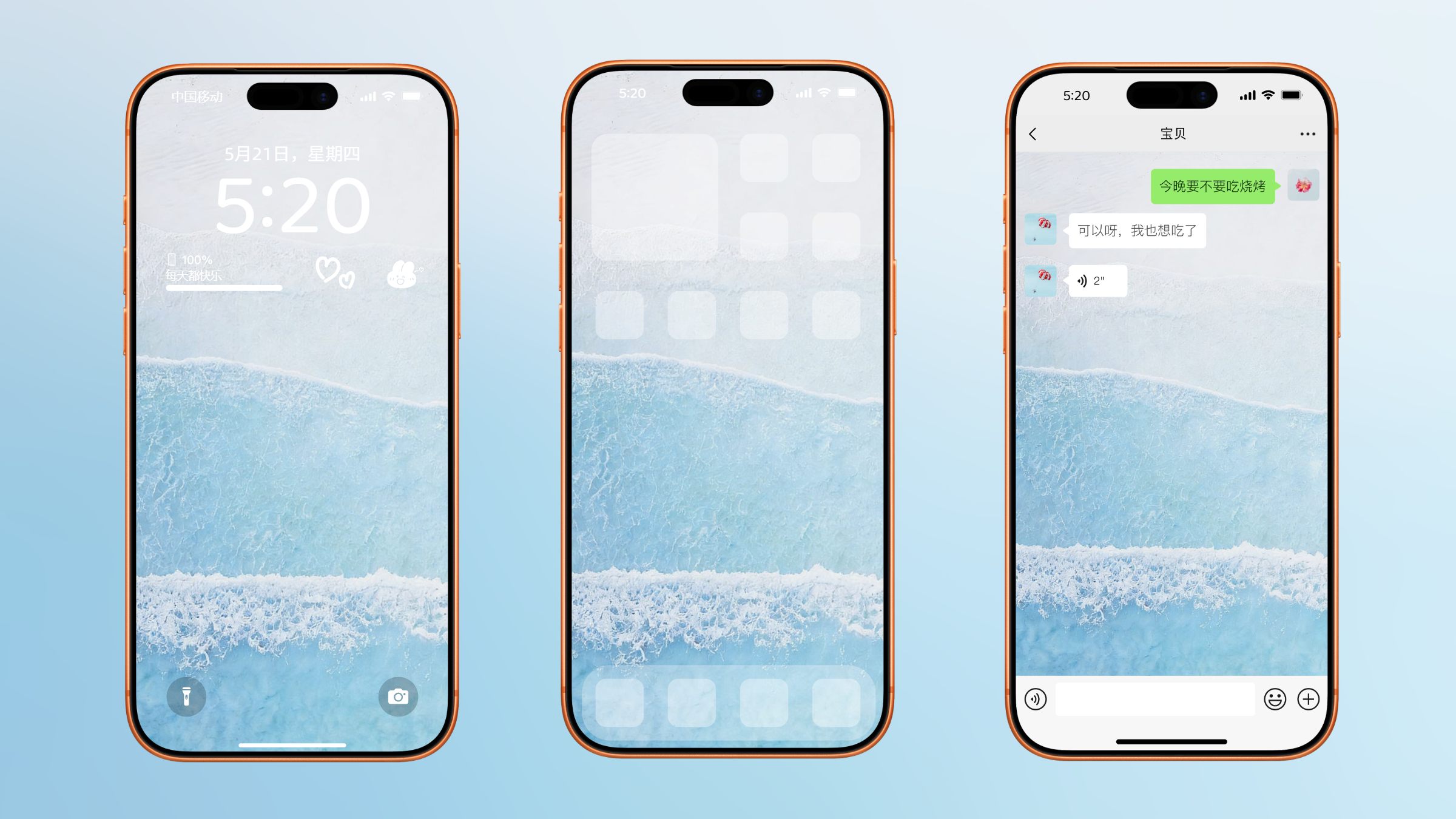 蓝色色系简约微信聊天背景图片, 风景类型
