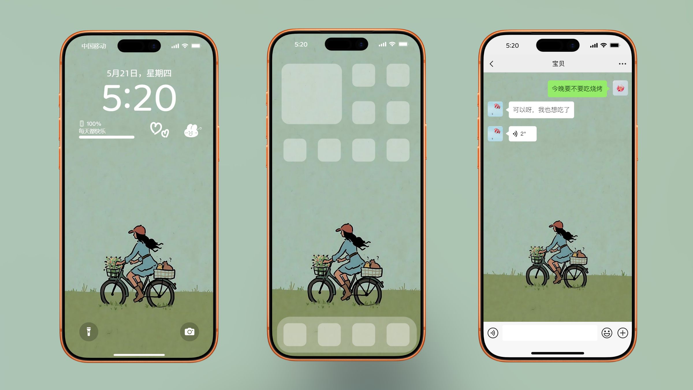 绿色系简约微信背景图片,聊天框背景, 人物卡通