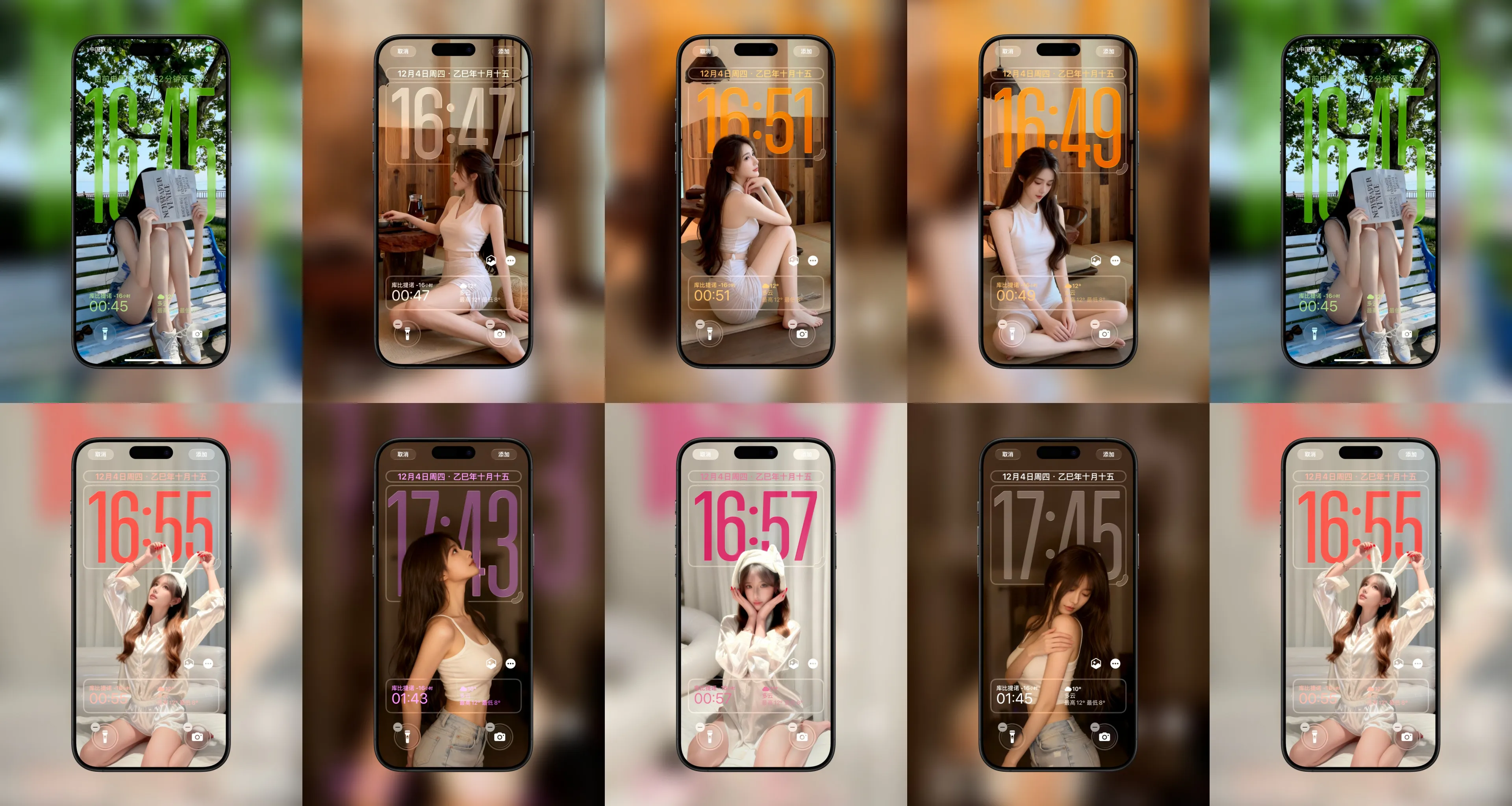 苹果IOS26景深特效时尚女孩手机锁屏壁纸屏保|8张合集
