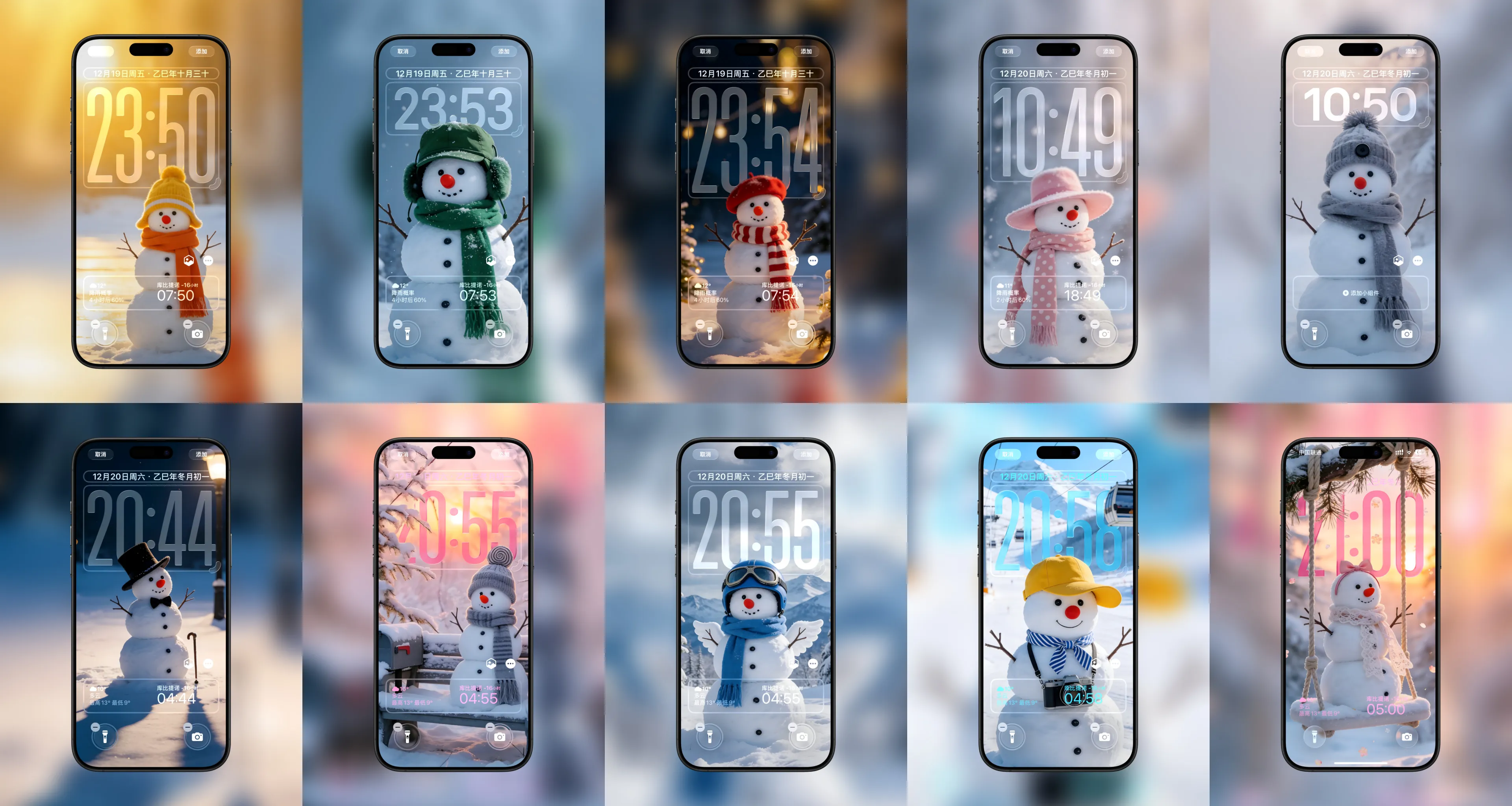 圣诞节雪人图案|IOS26景深锁屏壁纸|高清可爱卡通10张合集|A066