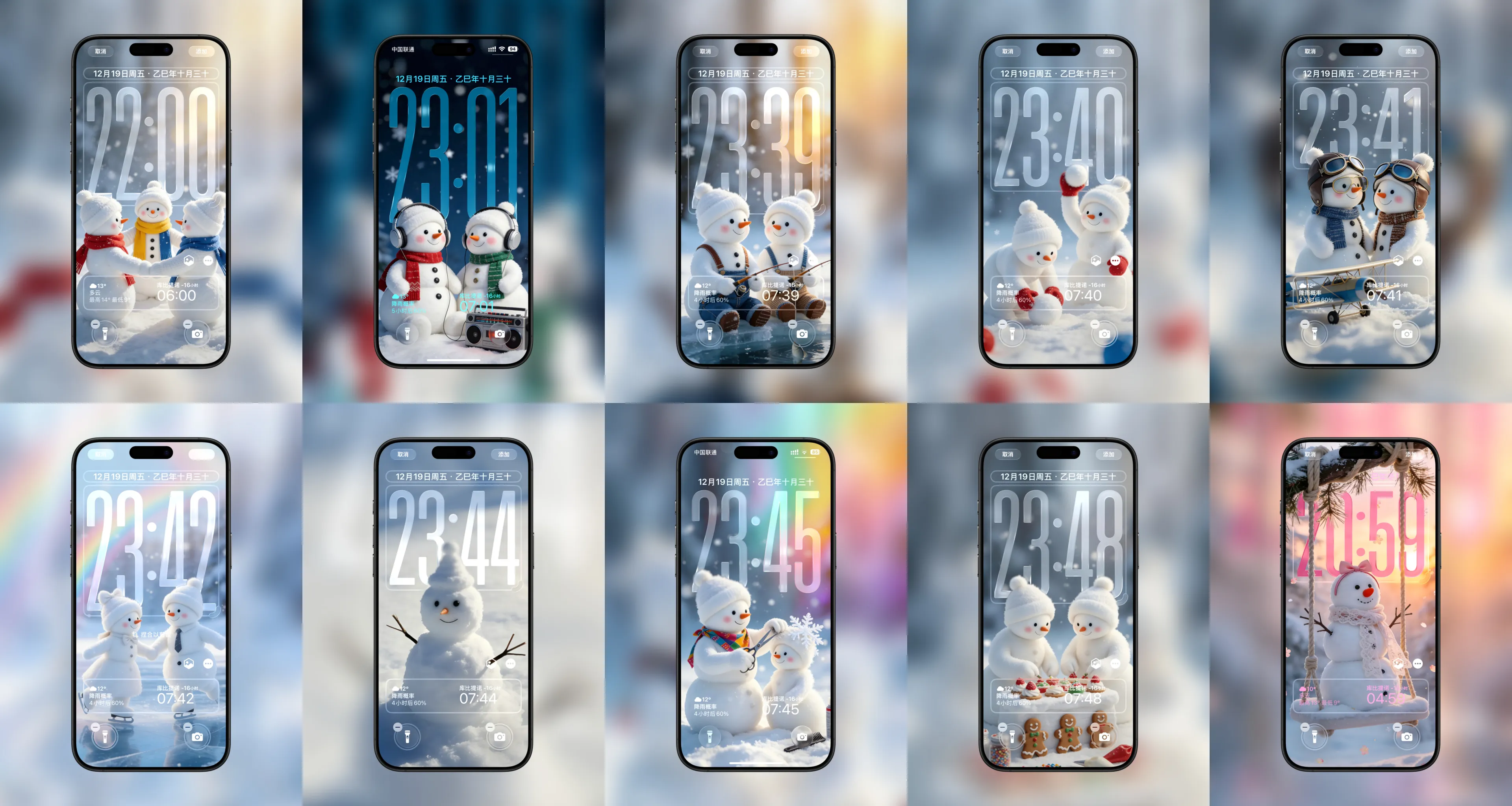 圣诞节雪人图案|IOS26景深锁屏壁纸|高清可爱卡通10张合集|A066