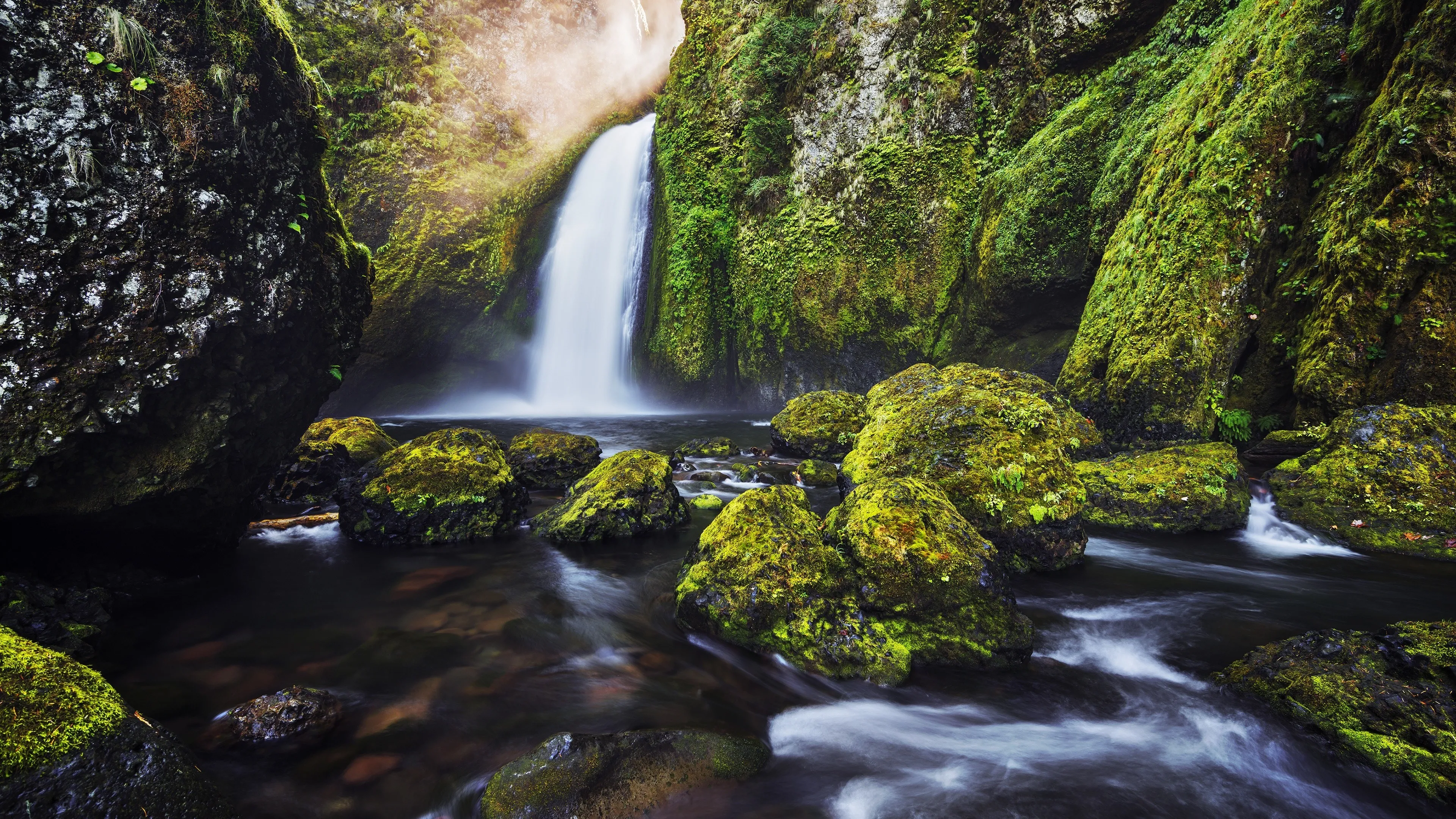 壮丽宏伟美4K风景苔藓 森林 瀑布 电脑壁纸
