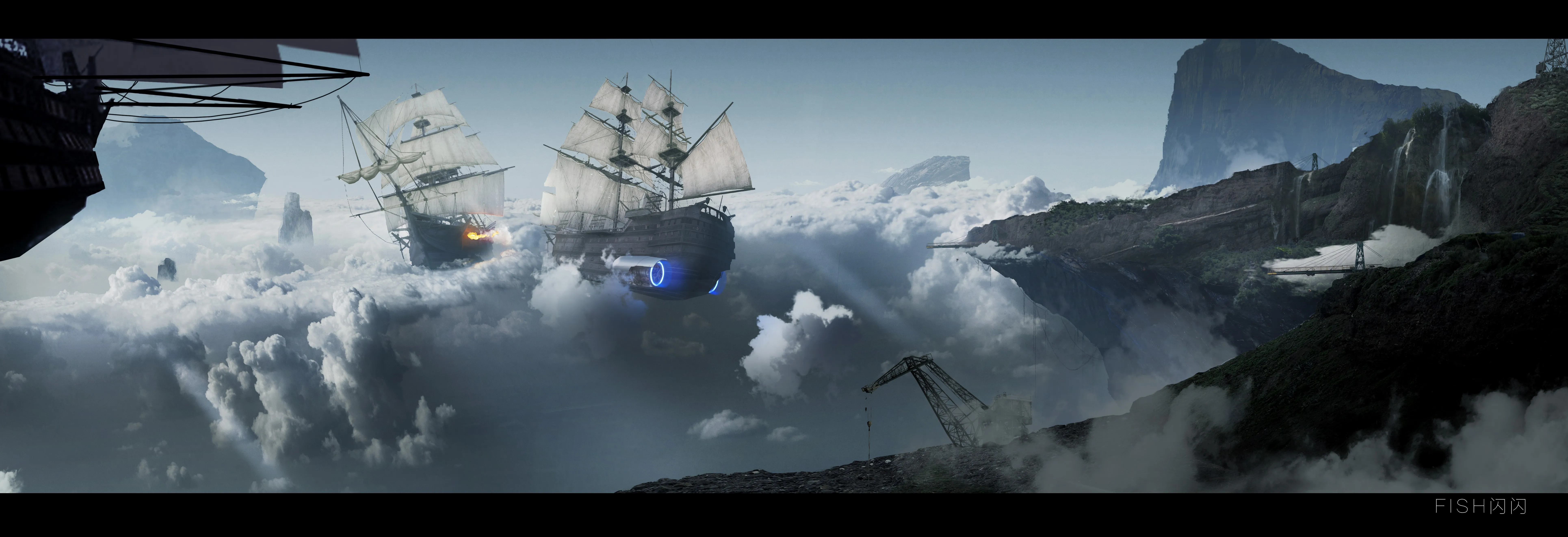 飞艇 帆船 车辆 战斗 风景 天空 云 船 游戏 科幻 桌面壁纸 8K壁纸