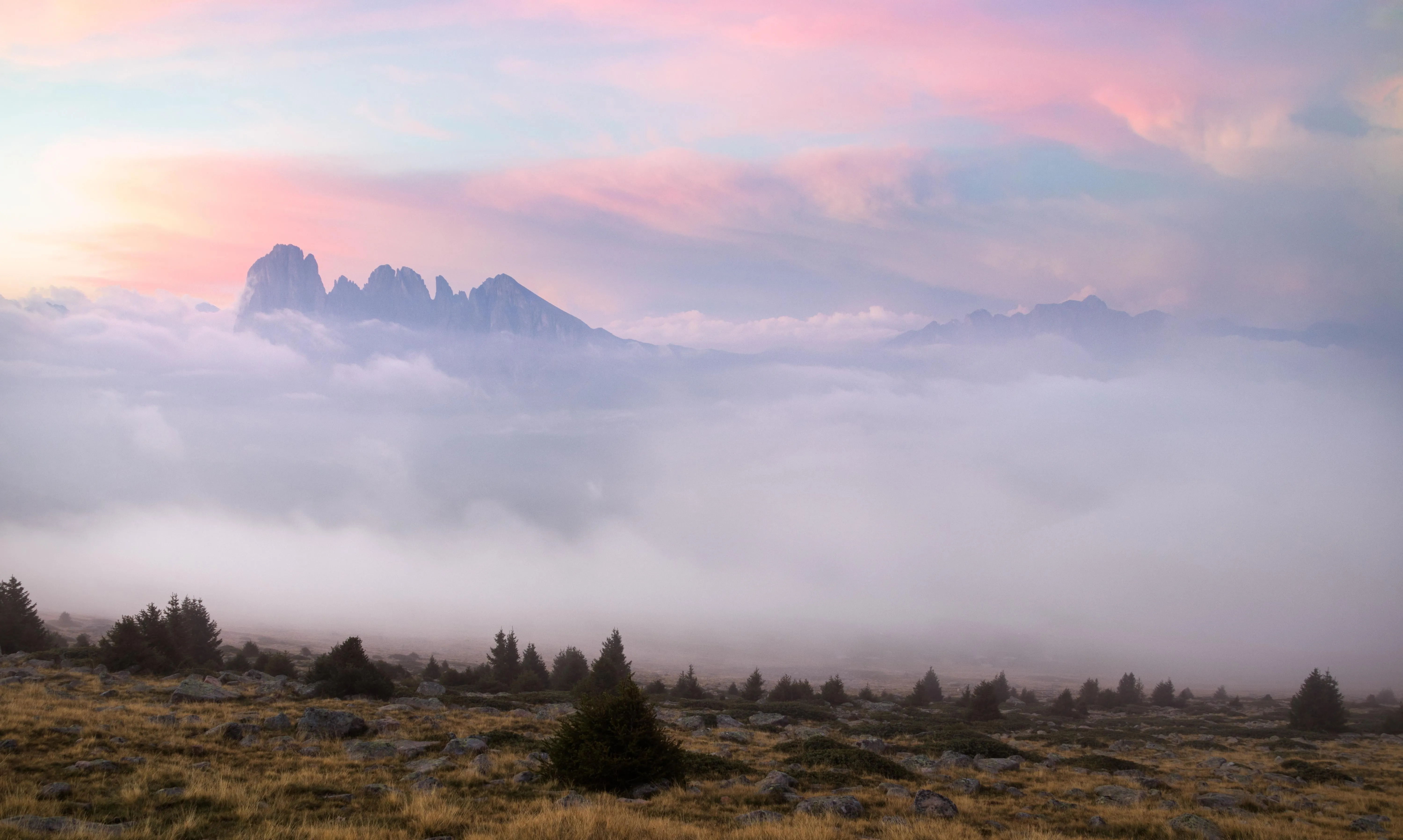 壮丽宏伟美4K风景薄雾 山脉 岩 电脑壁纸