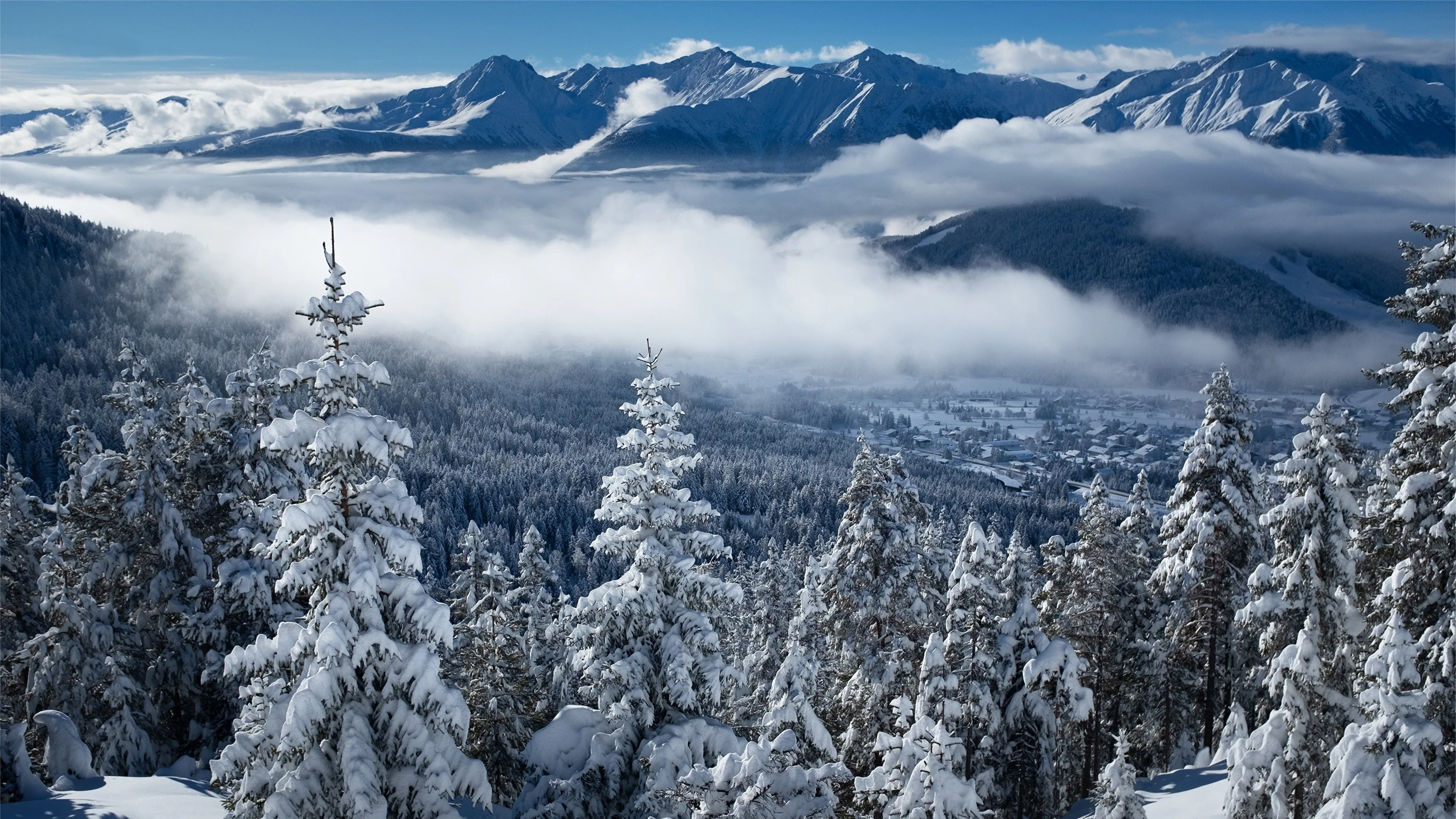 晶莹纯净美4K风景雪 山脉 云 电脑手机壁纸