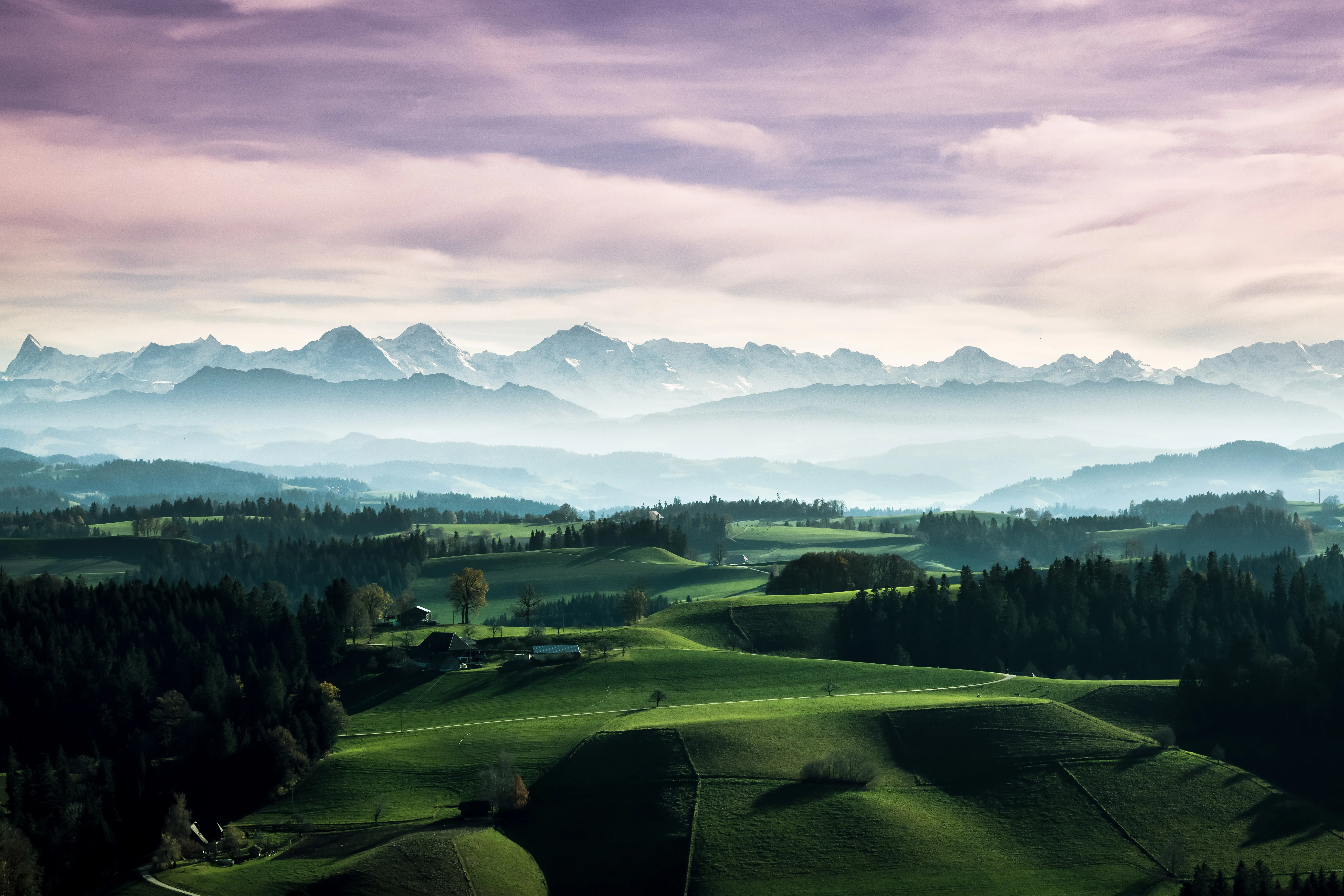 壮丽宏伟秀风景薄雾 瑞士 山脉 电脑壁纸